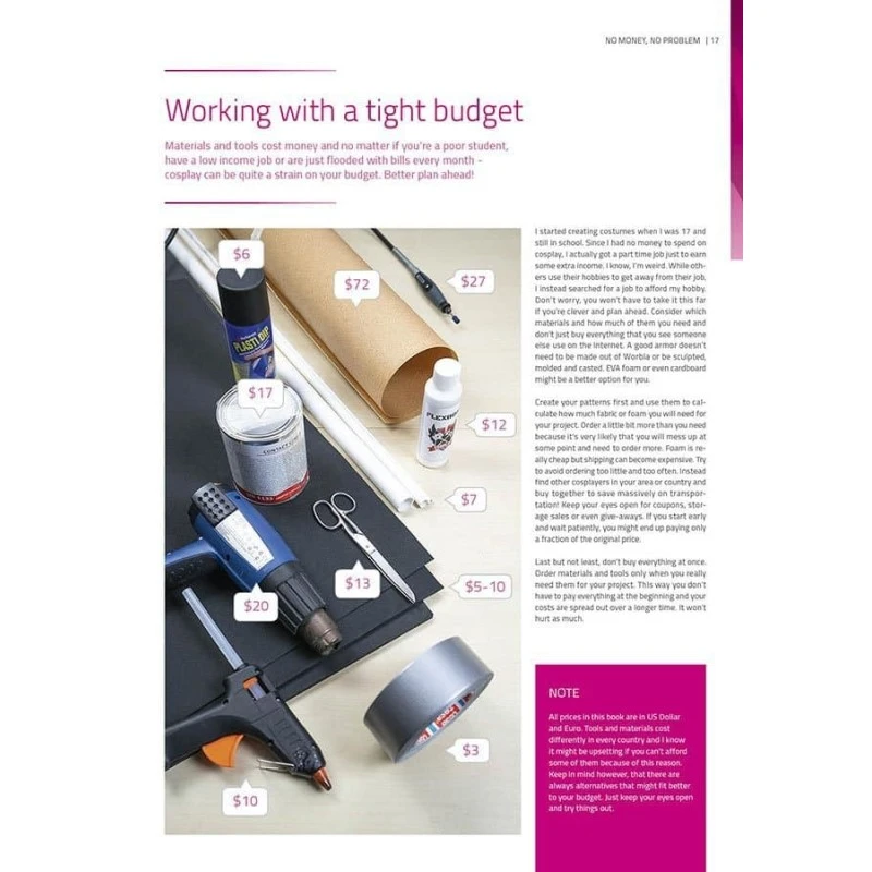 » Want to get into cosplay, but no idea where start? Then this is the book for you! On 48 pages and over 140 pictures I’ll show you how to pick a character, get basic materials and tools, search for tutorials and work with a limited budget and a tight schedule. I’ll help you to organize your crafting corner, share your work online and stay motivated during a long project. Cosplay is for everyone, so let’s have some fun together! «