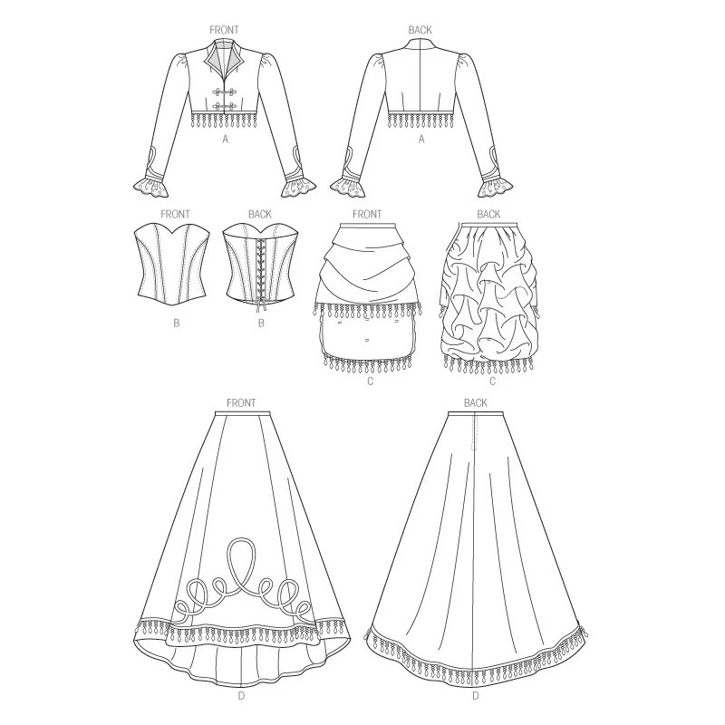 Patron de tenue type cabaret avec veston, corset, robe & traine