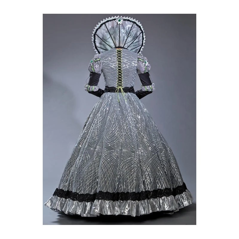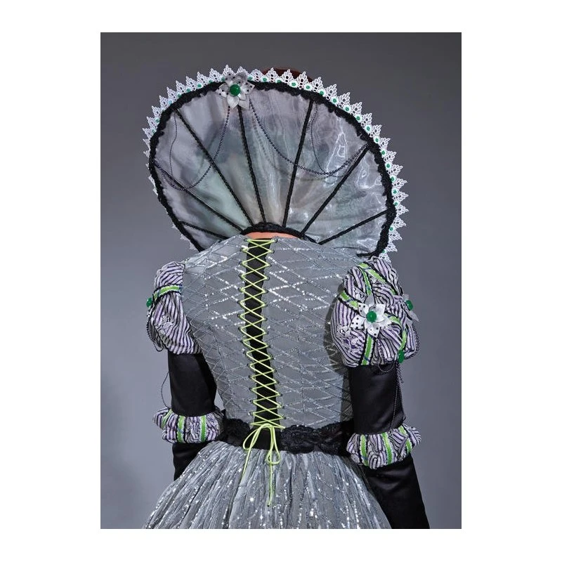 Patron de méchante reine composé de la collerette, d’un veston, d’une robe et de tabards