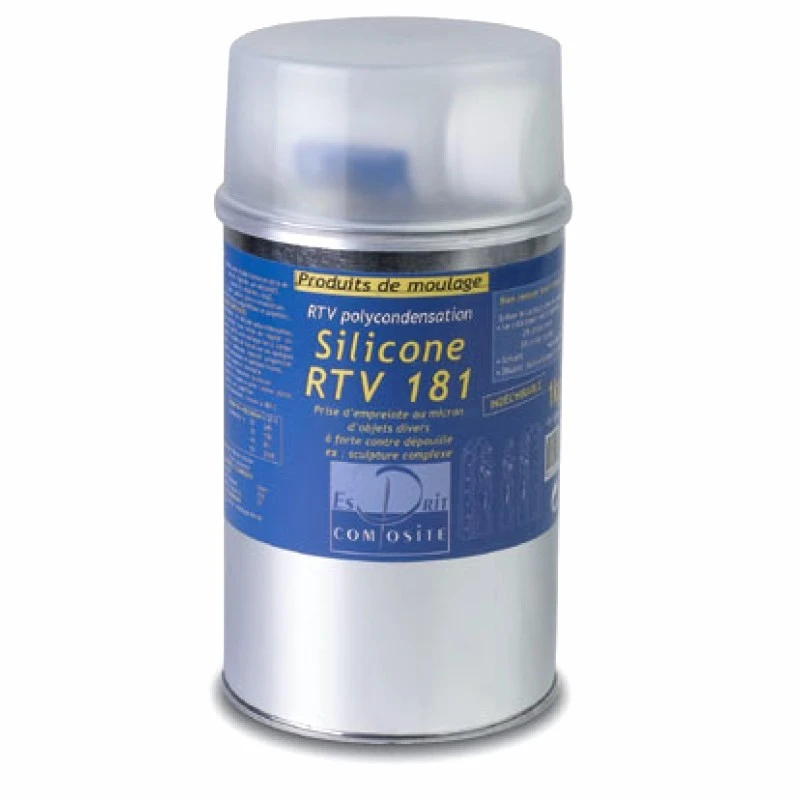 Le silicone RTV 181, est un élastomère très résistant permettant de réaliser des moules aux formes complexes. Il s’applique au pinceau, par couche successive ou en coulé.Un agent thixotrope peut y être ajouté pour augmenter sa viscosité et faciliter sa prise sur support vertical. La fidélité de l’empreinte est au micron, et il résiste à une chaleur de 180°, le moule permettra de réaliser des tirages en résine époxy, polyuréthane, polyester, plâtre, etc.Le temps de prise avec le catalyseur fourni est de 24 heures à raison de 5% de catalyseur.